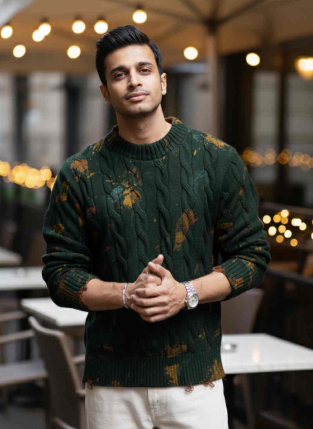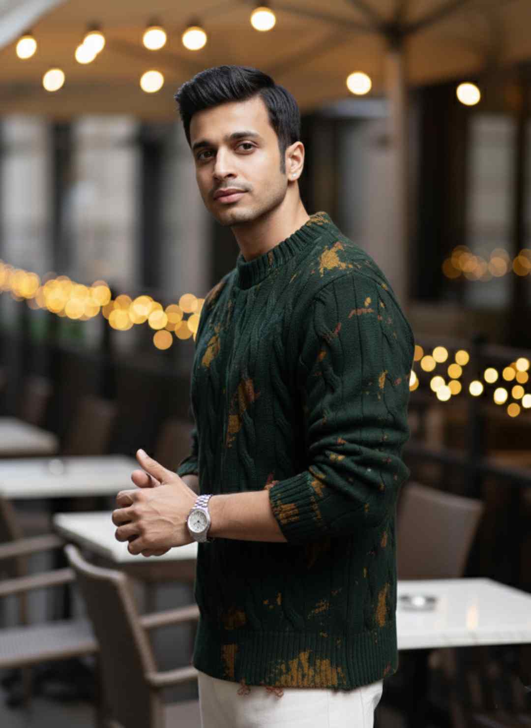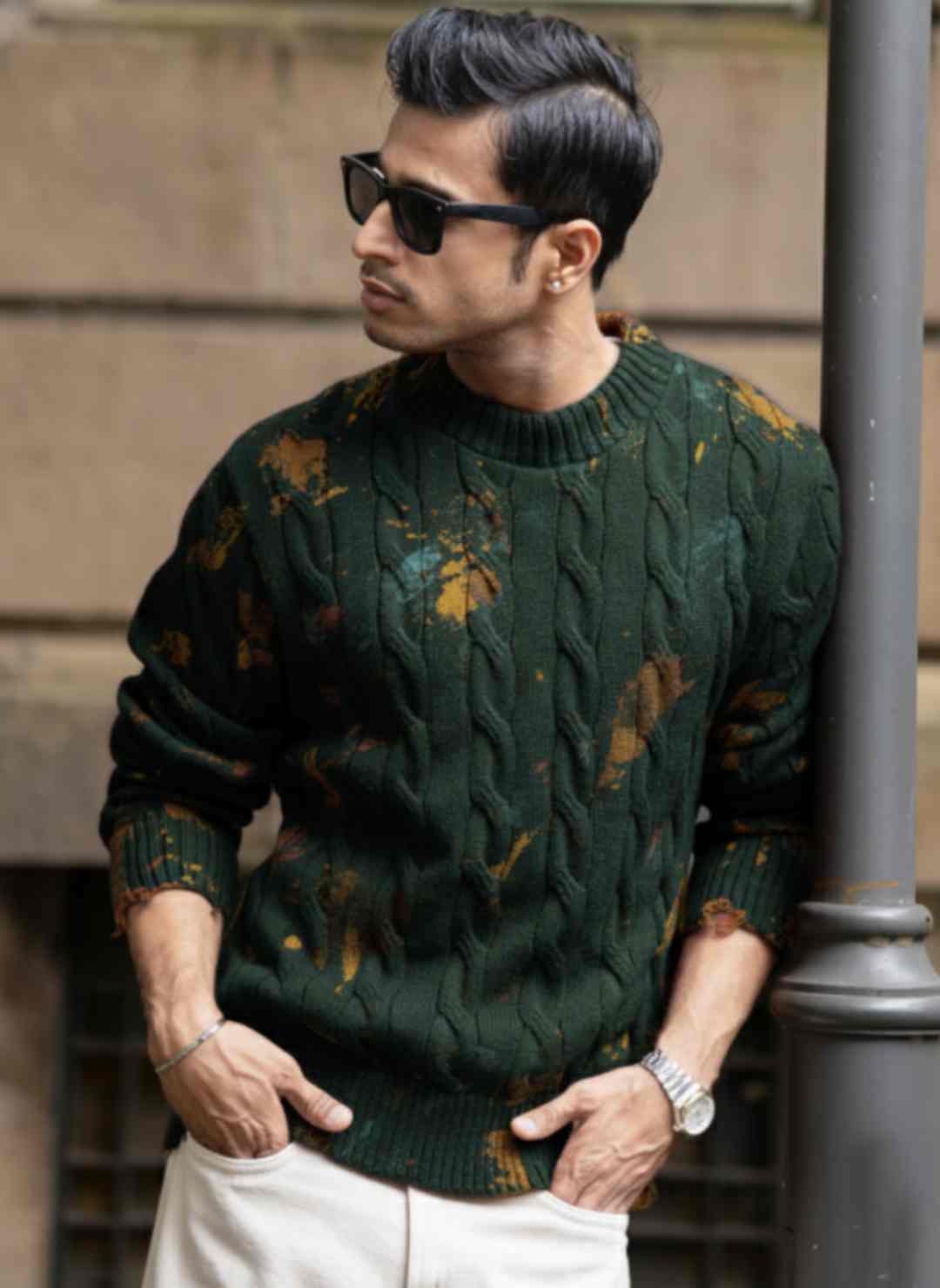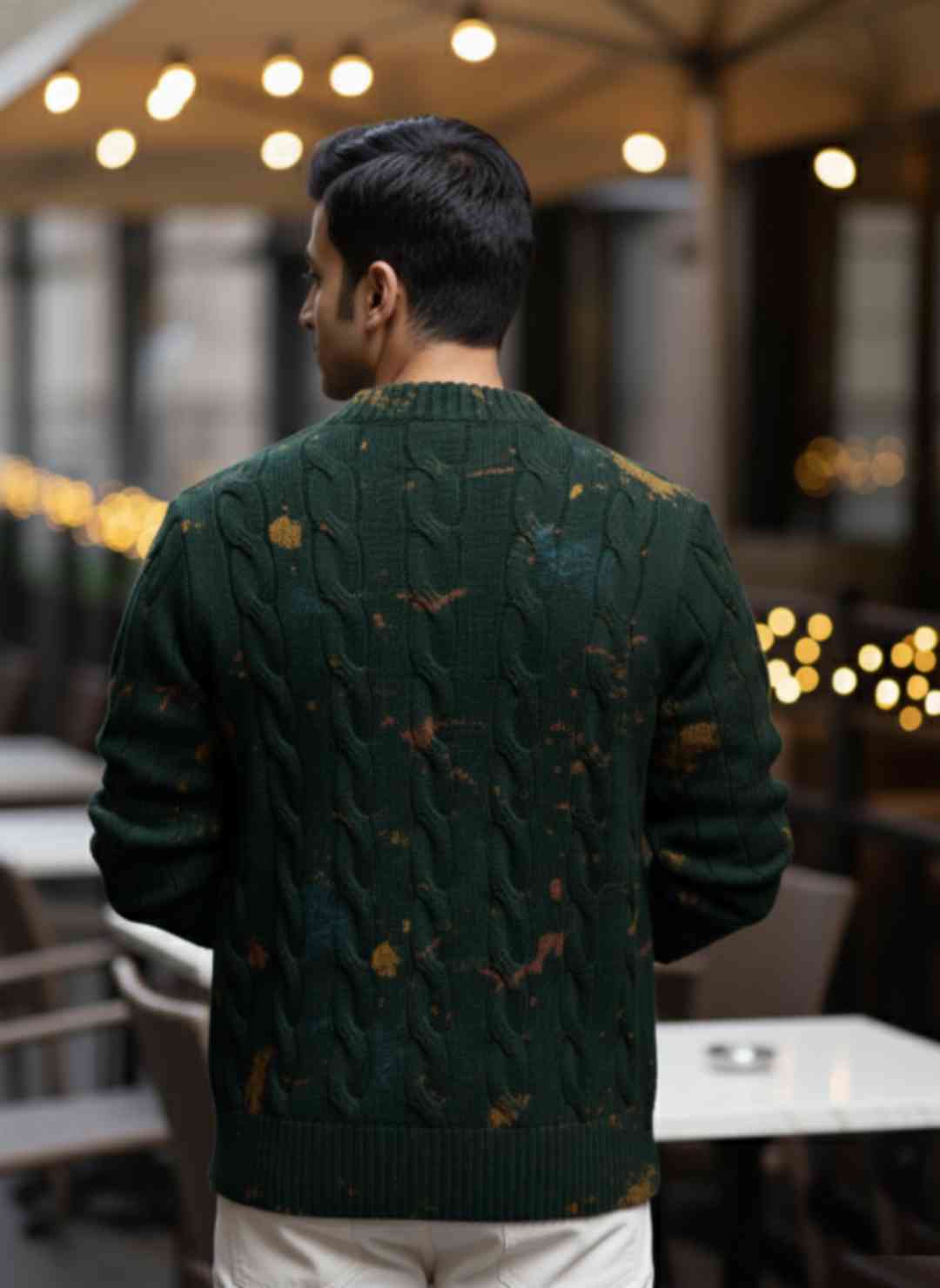 Men Cable Knit Round Neck Long Sleeves Pullover